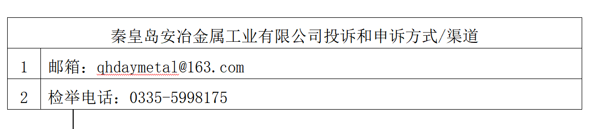 當(dāng)前位置:首頁-資訊中心-秦皇島安治金屬工業(yè)有限公司投訴和申訴方式/渠道